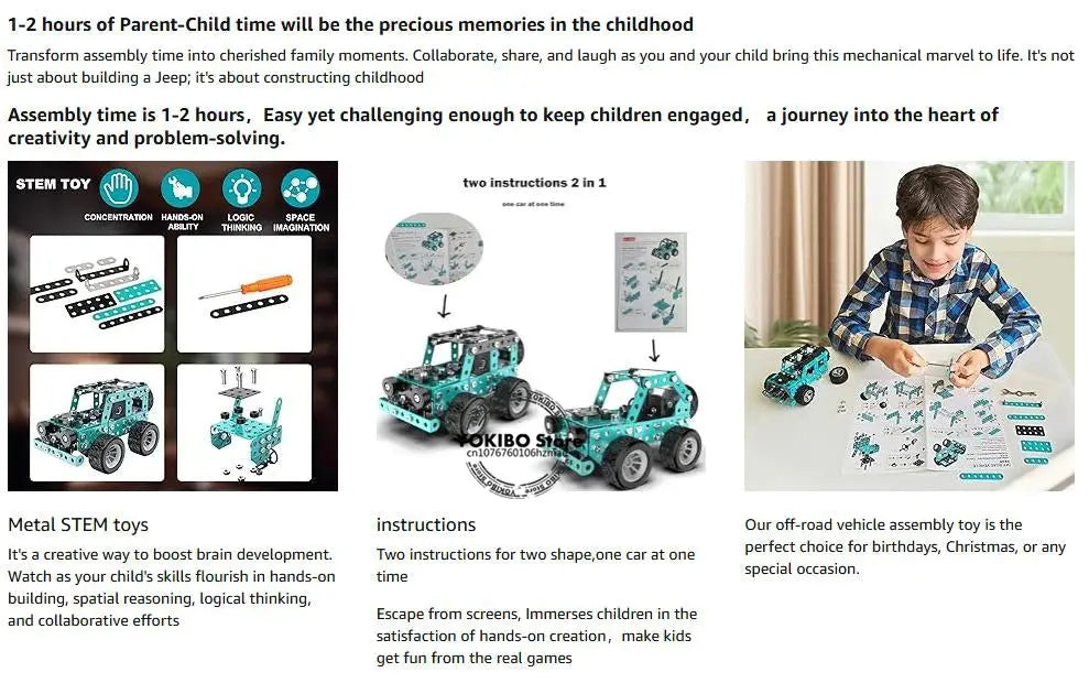 Building Sets Stem Assembly Metal 3-D Puzzle Off-Road Model Car Building Kit Construction Set Toys Parent-Child Interaction Toys