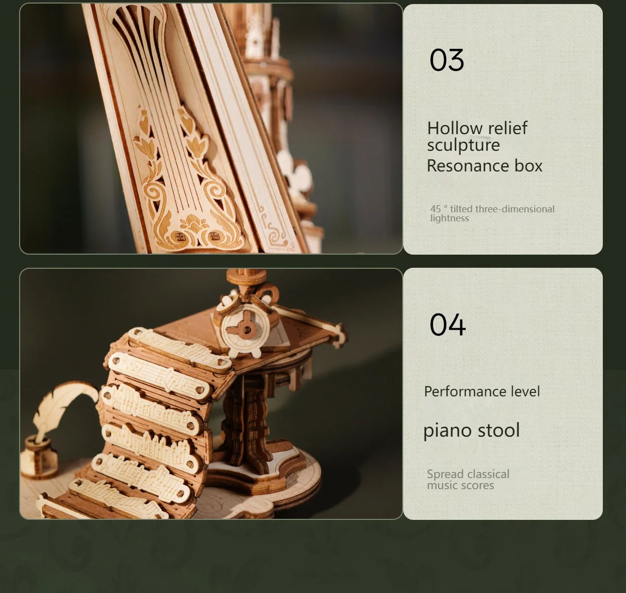 [ELEGANT DESK DECOR] More than just a hobby kit, the Stringed Harp Christmas Music Box puzzle serves as an impressive display piece for homes or offices. It creates a unique ambiance that builders and collectors will cherish and proudly showcase.